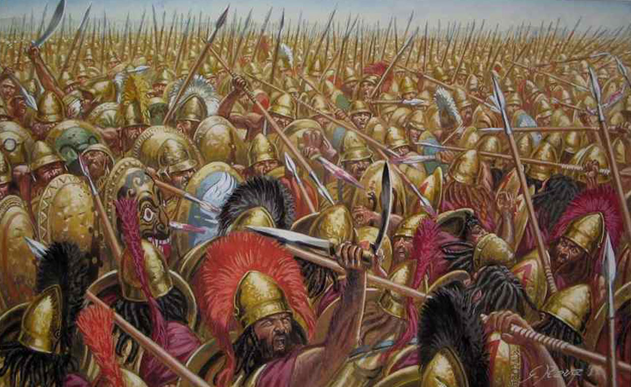 “At the battle of Leuctra in 371 BC, a resurgent Thebes led by its great statesmen and tactician reformers Epaminondas and Pelopidas defeated the army of Sparta. The defeat was one of the greatest shocks Greece had witnessed – not only did the Thebans defeat the Spartans but the Spartans turned and fled from the battlefields – something they had not done before even in the face of defeat. There were tactical innovations too – the Thebans drew up their formation in echelon and placed their own best troops on the left of their own line rather than the right – to deliberately face the Spartan contingent opposite them. They also had a particularly deep formation – Xenophon tells us it was fifty shields deep but it was probably at least 25 shields deep (a depth they had used before).